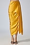 Ochre Yellow Silk Satin Draped Tie-Up Skirt