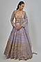 Featuring a lilac lehenga in net base with mirror, zari, dori thread and sequins embroidery. It is paired with a blouse and a dupatta. Accentuate it with dangler earrings and block heels for a wedding or sangeet ceremonies.
