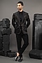 Featuring a black tuxedo in cotton velvet base with beadwork. It is paired with a shirt and pants. Style it with shoes for a reception, wedding, sangeet or engagement ceremony.