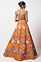 Featuring an orange lehenga in raw silk base with applique embellishments. It is paired with an embellished blouse and a tulle dupatta. Accentuate the designer lehenga with kundan polki or meenakari jewellery, embellished heels and a potli bag for a bridal look, Perfect wear for your wedding or engagement ceremony.