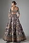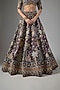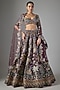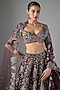 Aisha Rao presents a teakberry lehenga in raw silk and tulle base with applique embellishments. It is paired with an embellished blouse and a dupatta. Style this exquisite ensemble with an emerald dangler earrings, a statement necklace and a sleek bun, Perfect for destination weddings, sangeet or engagement ceremonies.
