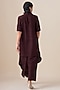 Featuring a deep burgundy tunic in raw silk base with drape detail. It is paired with wide-leg palazzo pants, belt and a brooch. Accentuate it with statement earrings and heels for a casual outing or family gathering.