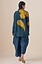 Featuring a midnight blue shirt in habutai silk base. It is paired with a slip and a faux leather belt. Accentuate it with pants, stud earrings and heels for a casual outing, get together or brunch wear.