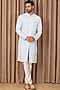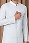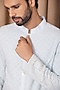 Featuring a powder blue kurta in cotton silk and georgette base with thread machine embroidery. It is paired with contrasting churidar pants.