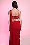 Featuring a red draped saree in georgette base. It is paired with a net corset blouse having beadwork, sequins and crystal embroidery, including sweetheart neckline and spaghetti straps. Accentuate it with statement jewellery and heels for cocktail events, wedding ceremony or festive occasions.