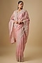 Featuring a blush pink saree in organza base with hand embroidery. It is paired with a blouse. Accentuate it with diamond jewellery and heels for an engagement ceremony or weddings.