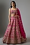 Cherry Red Organza Hand Embroidered Lehenga Set