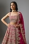 Featuring a cherry red lehenga in organza base with hand embroidery. It is paired with a blouse and a dupatta. Accentuate it with kundan polki jewellery and block heels for a bridal look, weddings or sangeet ceremony.