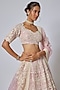 Featuring a light pink lehenga in organza base with hand embroidery. It is paired with a blouse and a dupatta. Accentuate it with statement jewellery and heels for a wedding or engagement ceremony.
