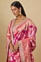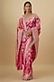 Featuring a multi-colored saree in silk banarasi base with hand embroidery and a zardosi border detail. It is paired with an unstitched blouse piece. Style it with diamond jewellery and block heels, perfect for a wedding, sangeet or engagement ceremony.