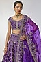 Featuring a purple lehenga in raw silk base with hand embroidery. It is paired with a blouse and a dupatta. Accentuate it with diamond jewellery and block heels for sangeet, engagement ceremonies or weddings.