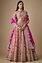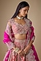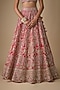 Featuring a red lehenga in organza base with hand embroidery. It is paired with a blouse and a dupatta. Accentuate with statement jewellery and block heels for sangeet ceremonies, weddings or a bridal look.