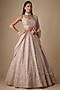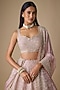 Featuring a soft pink lehenga in organza base with hand embroidery. It is paired with a blouse and a dupatta. Accentuate with diamond jewellery and block heels for engagement ceremonies or weddings.
