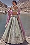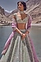 Featuring a tri-colored lehenga in organza base. It is paired with a blouse and a dupatta. Style it with kundan polki jewellery and block heels, perfect for a wedding, mehendi or engagement ceremony.