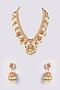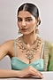 Featuring a gold finish necklace studded with kundan polki and green stones, set in mixed metal. It is paired with a matching pair of earrings. Perfect for grand occasions like weddings and traditional festivities.
