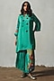 Featuring an aqua kurta in chiffon and shantoon base with hand detailing. It is paired with pants and a neckpiece. Accentuate it with delicate studs and block heels for a stylish ensemble, ideal for festive lunches or evening gatherings.