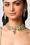 Featuring an antique gold finish necklace studded with kundan polki, pearls and emerald stones, set in brass. It is paired with a matching pair of drop earrings. Add a touch of sparkle to your ensemble, perfect for wedding ceremonies, special occasions or festive celebrations.