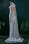 Featuring a purple-blue gown in italian tulle and silk lycra base with a waist cut-out detail and swarovski hand embroidery. It is paired with a feather trimmed veil. Accentuate it with diamond jewellery and heels for a high-fashion gala, red carpet or award night.