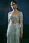 Featuring a serene sky blue gown in italian tulle and silk lycra base with beadwork and embroidery. Accentuate it with diamond jewellery and heels for a high-fashion gala, red carpet, cocktail or award night.