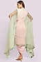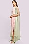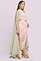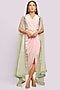 Featuring a light pink draped dress in crepe base. It is paired with a mint soft net sheer cape. Accentuate it with dangler earrings and heels for evening look.