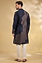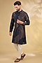 Featuring a navy and grey kurta in cotton chanderi base. It is paired with pants. Style it with kolhapuri sandals for a festive occasion or intimate pooja ceremony.