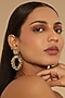 Featuring a pair of gold dangler earrings studded with glass beads, set in brass and cotton. It has a mild steel post and leather backing. Ideal for festive occasions, weddings, or elevating your elegant evening look.