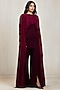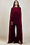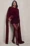 Featuring an aubergine sculpted draped top in ferrari net base with a high neckline, gathered detail and extended cape panels. It is paired with wide-leg trousers. Accentuate it with zirconia or swarovski jewellery, metallic heels and a leather clutch, a great choice for evening parties, formal dinners, and special occasions.