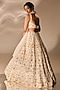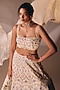 Featuring an ivory lehenga in silk base with resham, french knot and zardosi embroidery. It is paired with an embroidered blouse and a satin organza cutwork dupatta. Accentuate it with kundan polki earrings and metallic heels for a wedding, cocktail or sangeet ceremony.