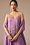 Featuring a purple top in silk base with cutdana and sequins embroidery. It is paired with fish-cut pants and a satin organza dupatta. Accentuate it with statement jewellery and heels for wedding ceremony or festive occasions.