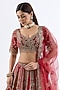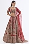 Featuring a blush bloom lehenga in raw silk base with dori and zardosi embroidery. It is paired with an embroidered blouse and a tulle dupatta. Accentuate it with statement jewellery and heels for a wedding or engagement ceremony.