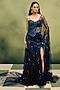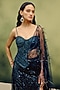 Featuring a navy blue skirt saree in butterfly net base. It is paired with a top. Accentuate it with statement jewellery and heels for a festive occasion, wedding or sangeet ceremony.