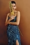 Teal Net Crystal Embellished Gown