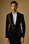 Featuring a black tuxedo in velvet base. It is paired with pants. Style it with shoes for a reception, sangeet or engagement ceremony.