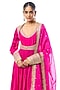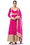 Featuring a pink anarkali in chiffon base with embroidery. It is paired with lycra churidar, a tussar jacket and an organza dupatta. Accentuate it with statement jewellery and heels for a festive occasion, wedding or engagement ceremony.