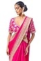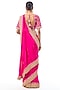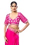 Featuring a pink saree in chiffon base with embroidery. It is paired with a tussar embroidered blouse. Accentuate it with statement jewellery and heels for a festive occasion, wedding or engagement ceremony.
