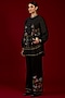 Featuring a black shirt in linen satin base with floral and french knot embroidery. It is paired with pants. Style it with statement earrings, soft curls and block heels, perfect for an evening look.