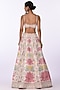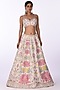 Featuring an ivory lehenga in silk blend and raw silk base with hand embroidery. It is paired with a blouse having sequins and thread embroidery, including a net and viscose dupatta. Accentuate it with statement chandbali earrings and embellished heels for a refined ensemble, ideal for sangeet ceremonies or festive occasions.