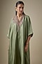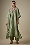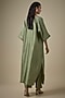 Featuring a green kaftan in silk base with embroidery. It is paired with palazzo pants. Accentuate it with statement earrings and heels for festive occasions.