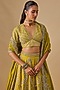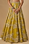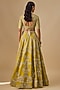 Featuring a mustard lehenga in raw silk base with zardosi embroidery. It is paired with an embroidered blouse and a dupatta. Accentuate it with statement jewellery and block heels for weddings or haldi ceremonies.