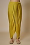 Featuring a mustard yellow silk in linen base with embroidery. It is paired with a mint green embroidered dupatta and dhoti. Accentuate it with statement earrings and heels for a complete look.