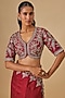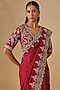 Featuring a pink saree in silk base with zardosi embroidery. It is paired with an embroidered blouse. Accentuate it with statement jewellery and block heels for weddings or sangeet ceremonies.