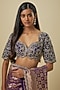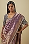 Featuring a purple saree in banarasi base. It is paired with an embroidered blouse. Accentuate it with statement jewellery and heels for a festive occasion or wedding ceremony.