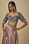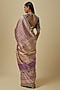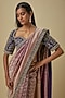 Featuring a purple saree in banarasi base. It is paired with an embroidered blouse. Accentuate it with statement jewellery and heels for a festive occasion or wedding ceremony.