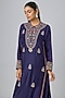 Featuring a purple kurta in silk base with zardosi embroidery. It is paired with embroidered salwar pants. Accentuate with statement earrings and heels for a festive look.