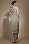 Featuring a gold saree in tissue organza base with sequin embellishments. It is paired with an unstitched blouse fabric. Accentuate it with statement jewellery and heels for a wedding or engagement ceremony.