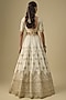 Featuring an ivory lehenga in raw silk base with hand and machine embroidery. It is paired with a blouse and a dupatta. Accentuate designer lehenga with statement jewellery and heels for a wedding, engagement or sangeet ceremony.