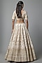 Featuring a light pink lehenga in raw silk base with embroidery. It is paired with an embroidered blouse and two dupattas. Accentuate it with kundan polki jewellery, a sleek bun and block heels for a wedding or engagement ceremony.