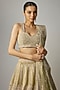 Featuring a lime green lehenga in velvet base with sequins and cutdana hand embellishments. It is paired with a net embroidered blouse and an embroidered dupatta. This designer lehenga is the perfect addition to your bridal trousseau.