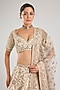 Featuring a peach lehenga in raw silk base. It is paired with a blouse and a dupatta. Accentuate it with traditional kundan or temple jewellery, a soft braided hairstyle or classic bun, and embellished juttis or heels for a timeless ensemble, ideal for wedding, engagement or sangeet ceremonies.