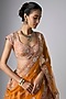 Featuring a rust lehenga in raw silk base. It is paired with a blouse and a dupatta. Accentuate it with statement jewellery, a clutch and heels, perfect for weddings or a bridal look.